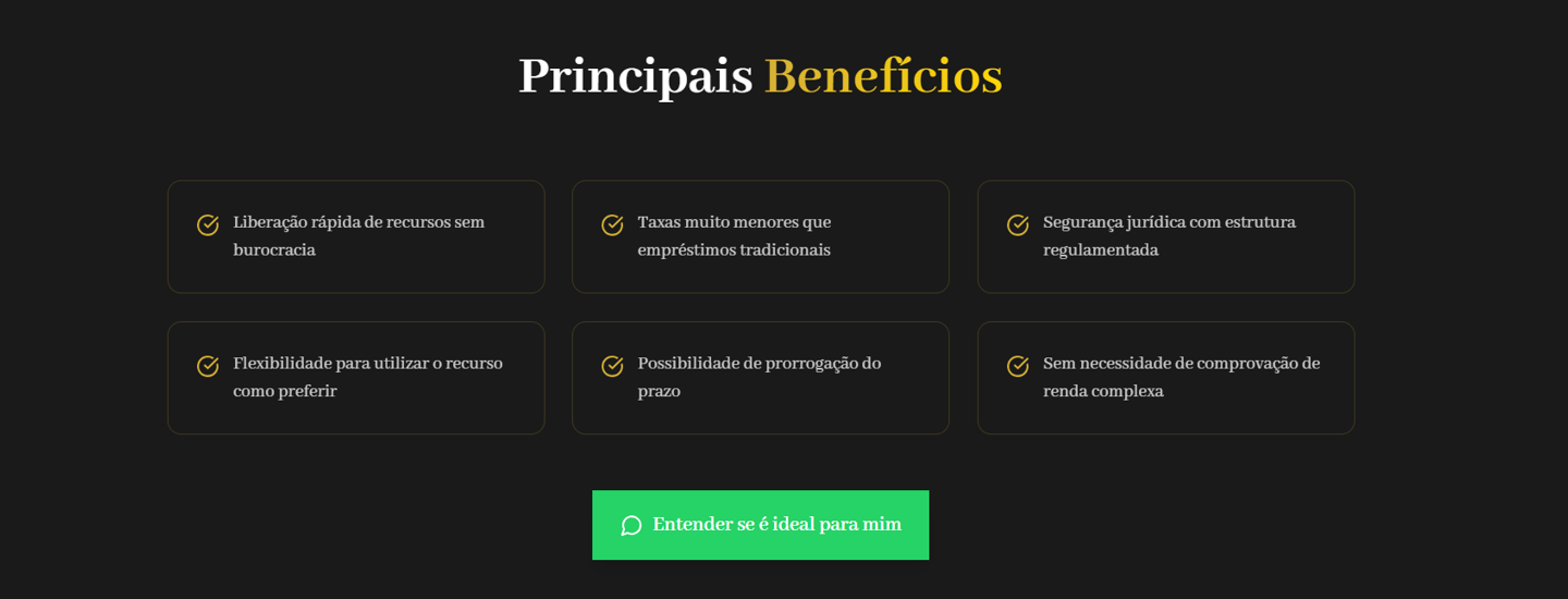 Solução inovadora para você ter acesso imediato a recursos usando seu imóvel, com as menores taxas do mercado e total segurança jurídica.