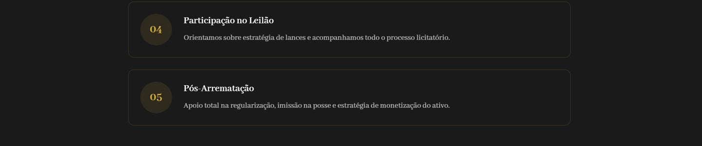 Assessoria completa para você aproveitar as melhores oportunidades do mercado de leilões com segurança jurídica e potencial de alta rentabilidade.